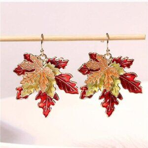 AMAZING Vintage Maple Leaf Enamel 3D Gold Tone Necklace Earrings