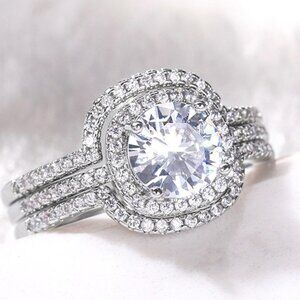 3pcs/set Engagement Square Zircon Silver Classic Romantic Ring Set, L121 ✅ Metal: 925 Sterling Silver Plated over High Quality Brass ✅ Stone: Cubic Zirconia ✅ High Quality Material ✅ Hand Crafted with love and care ✅ Perfect for gift, holiday, Christmas, birthday, vacation, Mother's day, Valentine's day, wedding, engagement , bridal, promise, anniversary, party ✨ Please feel free to message me if you have any questions. Thank you for shopping with us!