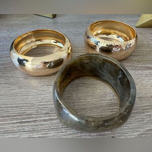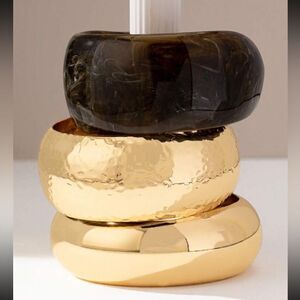 3pcs stackable bracelet in gold and brown hardware