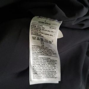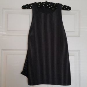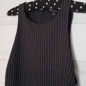 (1) BANANA REPUBLIC grey/white pinstripe-blouse, size 4 (fits like a 2/4) size 4. tailored-fit and slight flares at bottom. light lining underneath. side zip for ease of wear.