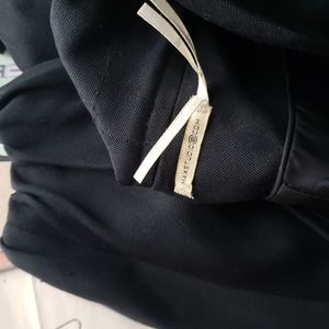 (3) MAX STUDIO black soft blazer jacket, size XS. pleated detail at shoulder, hits above wrist w/ ruching detail, size XS.