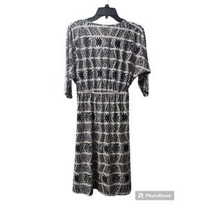 3th & Love Black White Geometric Print Midi Dress V Neck Casual L