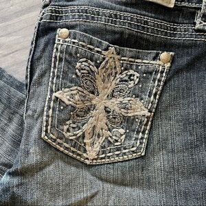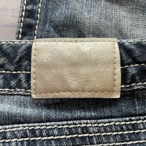 These Jeans are in good condition with normal signs of wear. They are 99% cotton and 1% spandex and machine washable. They are very comfortable and are great for any vacation or just a casual day or night out.
