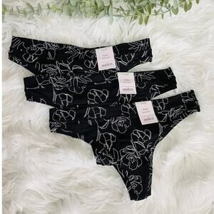3x NEW Auden Women's Thong Low rise Full Waistband Elastic Opaque Flora Size S.