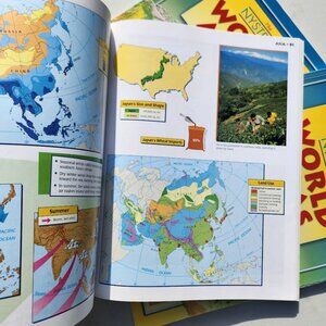 3x Nystrom World Atlas Bundle Maps Books Book Globe Map Social Studies 3 Books Set Pack Lot