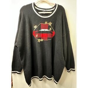 3x Torrid Sweater Black Red Plaid Star Lips Graphic Super Soft Crew Gold Sequin