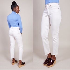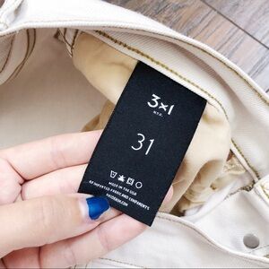 Fabulous high rise ankle jeans by 3x1 NYC. “Claudia Slim” style in "pale stone" (beige). Button fly, straight leg, high waist. Waist 31-33“, rise 12“, inseam 25.5“. Size 31, excellent preowned condition.