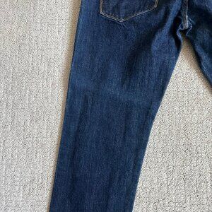 Discover the refined craftsmanship of the 3x1 NYC Men’s M5 Slim Selvedge Raw Denim Jeans. Proudly made in the USA, these jeans are designed with a modern slim fit, perfect for effortlessly enhancing your everyday style. The jeans are constructed from premium selvedge raw denim, known for its durability and unique fading characteristics over time. The deep indigo color provides a versatile base that pairs well with a wide range of clothing. The jeans feature a classic 5-pocket style and a button fly for traditional appeal. Sized at 33x28, they provide a comfortable fit that complements the natural lines of the body. Item code: M5SL20070 #1. Elevate your wardrobe with these timeless denim jeans, a staple piece for any discerning gentleman.