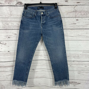 3x1 NYC Revolve SZ 27 Lima Cropped Jeans Straight Fringe Frayed Hems Button-Fly