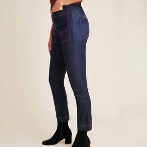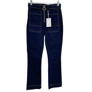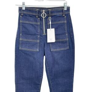 3x1 Scarlett Cropped Slim High Rise Dillon Womne's Jean's 26 NWT sold through Anthropologie and LUISA VIA ROMA. 3x1 is known for their hand crafted denim, made in SoHo. Slim leg, high rise, cropped ankle. Exposed O-ring design zipper with no button. Two flat front pockets on either side, and regular flat rear pockets. Dark blue denim is perfect for fall, and the 27" inseam allows you to show off your favorite booties. Tagged a size 24. 92% cotton, 6% elastomultiester, 2% elastane. Made in USA. Approx. Measurements (Flat) Inseam 27" Waist 13.5 Rise 11" Bin 7242