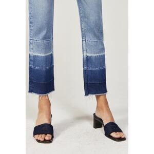 This 3x1 straight leg Crop denim is a slim fit with a high rise. The details of the spectrum fading and a frayed hem, make this denim one of a kind.