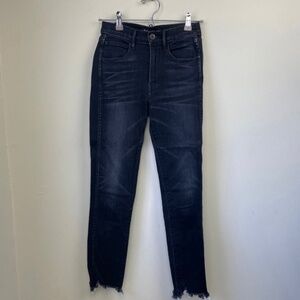 3x1 Straight Authentic Crop Jeans Distressed Fringe Hem Mid Stretch Denim Shake