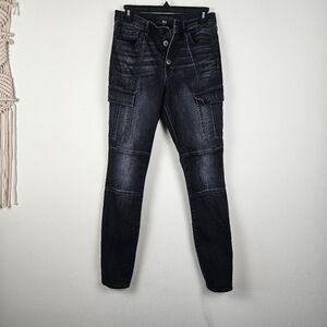 3x1 Vida High-Rise Cargo Skinny Jeans Button Fly Stretch Denim Weber Black 28