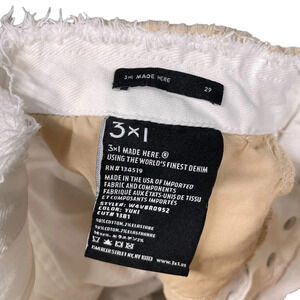 3x1 W4 Shelter Slim Jeans Raw Edge Split Hem Button Fly White Denim Size 29