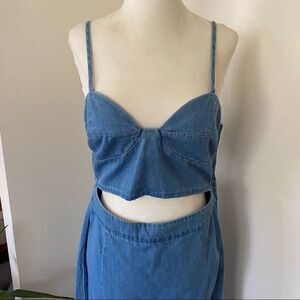 summer, spring, denim, chambray, cutout, midriff, bustier, date, brunch, feminine, flirty, sweetheart, boho, bohemian, sexy