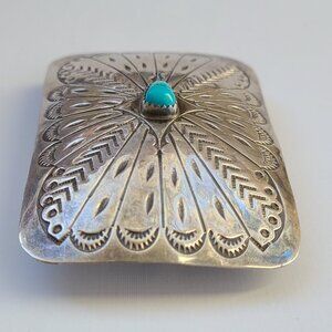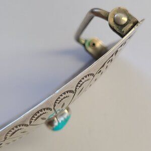 3"x2" Native American Navajo Sterling Silver Turquoise Hand Stamped Belt Buckle