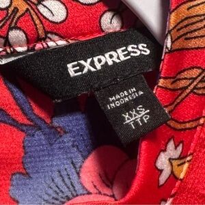 Express Red Oriental Blossoms Choker Cap-sleeve Silky Blouse XXS TTP Lightweight