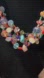 The necklace is a multi-strand torsade design featuring a variety of colorful glass and gemstone beads. It appears to have three main strands, each densely packed with different shapes, sizes, and colors of beads, creating a vibrant and eclectic look. The beads include various shades of blue, green, red, orange, purple, and clear, and are made from materials such as jasper, citrine, carnelian, and agate. The overall style of the necklace is bold and eye-catching, suitable for adding a pop of color to an outfit