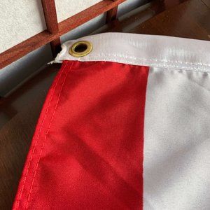 TWO BRASS GROMMETS Securely fastened to the strong durable polyester canvas heading, this flag features two solid strong brass grommets for hanging. This flag looks good on in ground flagpoles as well as mounted flag poles. Grommets are heavy duty and anti rust, perfect for flying in various weather conditions.