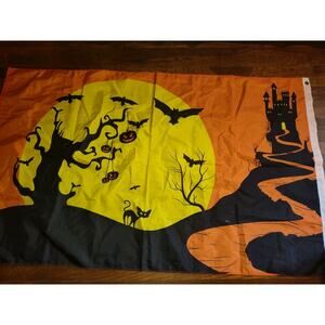 3x5 Happy Halloween Bats Pumpkins 100D Woven Poly Nylon 3'x5' Flag Banner