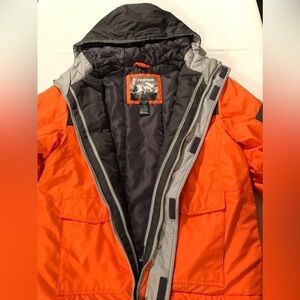 Brand new coat (boys have bad habits of ripping off tags first 😣) it is a heavy duty coat with quilt lining, 2 zippers, Velcro shut, full hood with closure and 3 front pockets. Amazing coat to keep your kiddos warm at the bus stop or in a snow ball fight! ❄️🏂⛷
