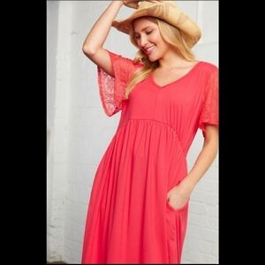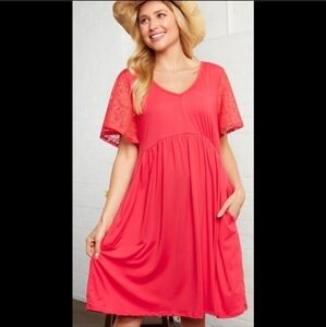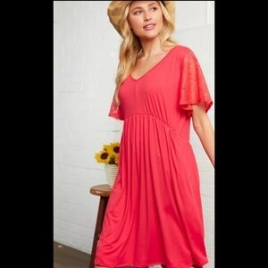 💚3xHP💚Plus Coral Crochet Lace Flutter Sleeve Babydoll Dress