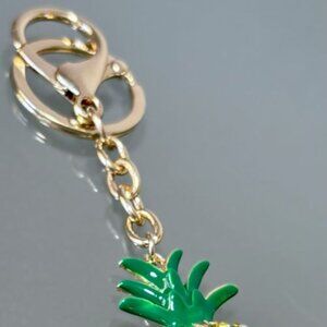 4 1/2" Gold Yellow Clear Rhinestone Bling Pineapple Fruit Bag Charm Keychain New