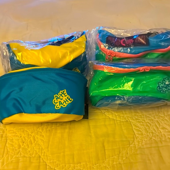 Brand new / Never used 100% Nylon 80’s Fanny pack by Yung Kee NY Includes all 4 (2) are blue & yellow (2) are blue, orange & green