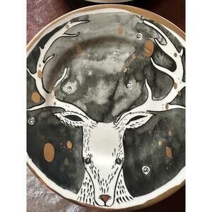 4 x Anthropologie Moonlit Forest / Celeste Dessert Plate deer stag holiday cabin