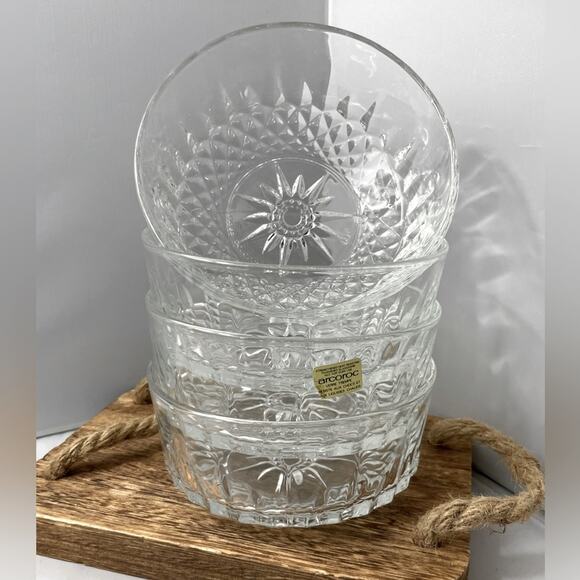 4 Arcoroc Diamant Glass 5" Salad Bowls
