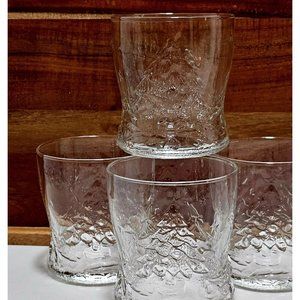 4) Arcoroc Embossed Holly Tree Old Fashioned Glasses Luminarc holiday Christmas