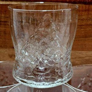 Arcoroc Embossed Holly Tree Old Fashion Glasses Luminarc holiday Christmas