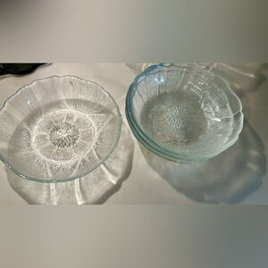 All of these are in excellent condition. I have 3 sets of 4 dishes listed. They are perfect for any party. Great size for appetizers or bread dishes. The large serving bowl, seen in some of the photos, is also listed for sale in my closet.