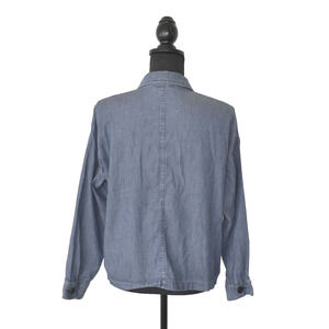 А4 Auth EILEEN FISHER Blue Organic Cotton Button Up Denim Petite Jacket Size PM