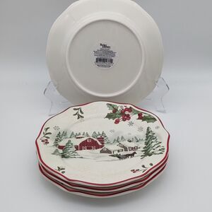 4 BARN SLEIGH Winter Forest by Better Homes 8.5" Salad Plate Heritage Collection