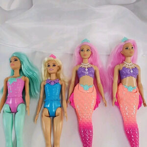 4 Barbie Dreamtopia Dolls Mermaid Tail Doll Rainbow Ombre Lot Of 4