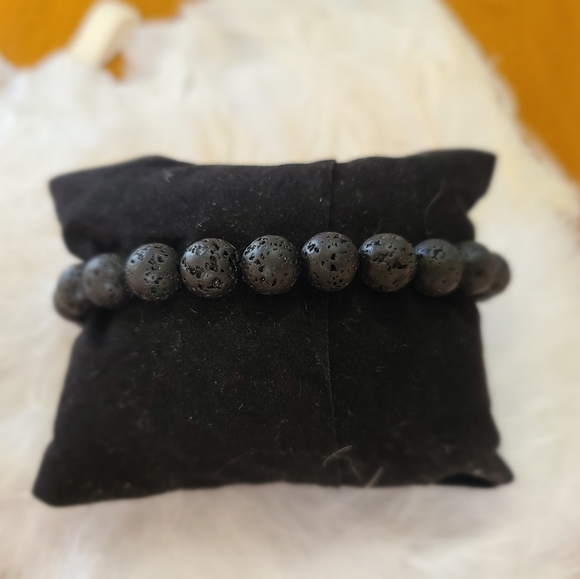 ajustable 8 mm beads braclets with waxed pull string for more durability. Real semi precios stones, no plastic or glass. black obsidian, black lava and black slate stone
