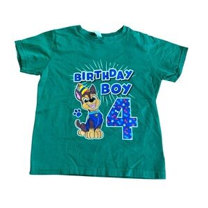 4 Birthday Boy Paw Patrol Chase Green t-shirt Short Sleeve Top Tee Size 5-6