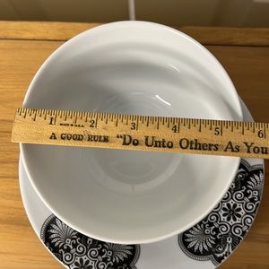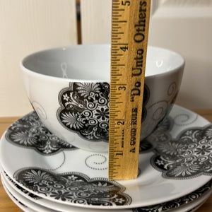 4 Black White Salad Appetizer Desert Plates and 1 Bowl