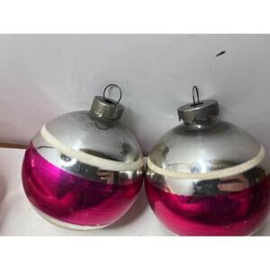 The indented one is Shiny Brite, the 2 silver ones are Made in the U S of A and the other is unmarked. None broken. Wear as seen. The largest are 2.5" diameter.