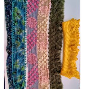 4 Boho Multi-Style Scarves Bundle: Ruffle, Fringe, Patchwork Bubble, Pom-Pom