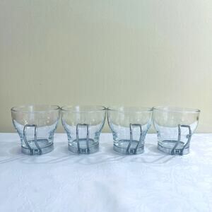 Vintage Set of 4 Bormioli Rocco Oslo Italian Tempered Glass Espresso w/ Metal Handle Cups, Mugs, Cup. Made in Italy. Marked "Bormioli Rocco 30 Tempered Glass".