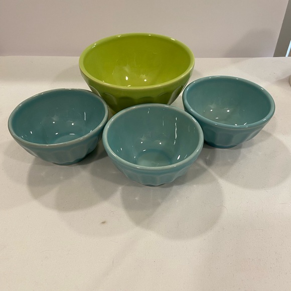 Bowl bundle (1) Biscuit by Anthropologie latte bowl in Chartreuse (3) Primogera bowls in sea foam green, all made in Portugal, no chips or cracks -T