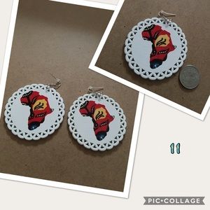 11:White Lace Round Earrings with Africa shape inside.