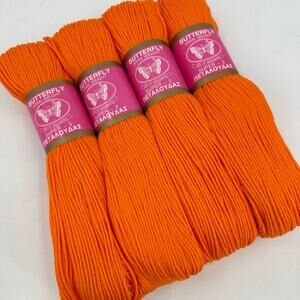 4 Butterfly Threads EL. D. Mouzakis Yarn Aran 100% Mercerized Cotton ORANGE