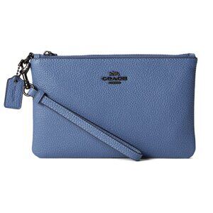 COACH Polished Pebble Small Wristlet Washed Chambray