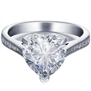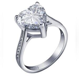4 Carat Diamond Sterling Silver Heart Solitaire Ring Size 8