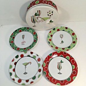 4 Christmas Appetizer Plates Holiday Cocktail Glass Cookie Plate Snack Dish 7 in