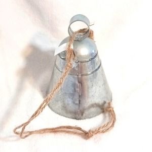 4" Christmas COW BELL Ornament Hanging Sound Ringer Silver Aluminum SNOW Rope
