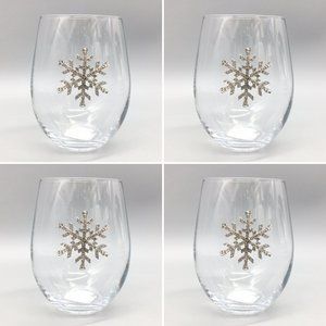 4 Christmas Rhinestone Snowflake Stemless Wine Glass Set Silver Jeweled Holidays